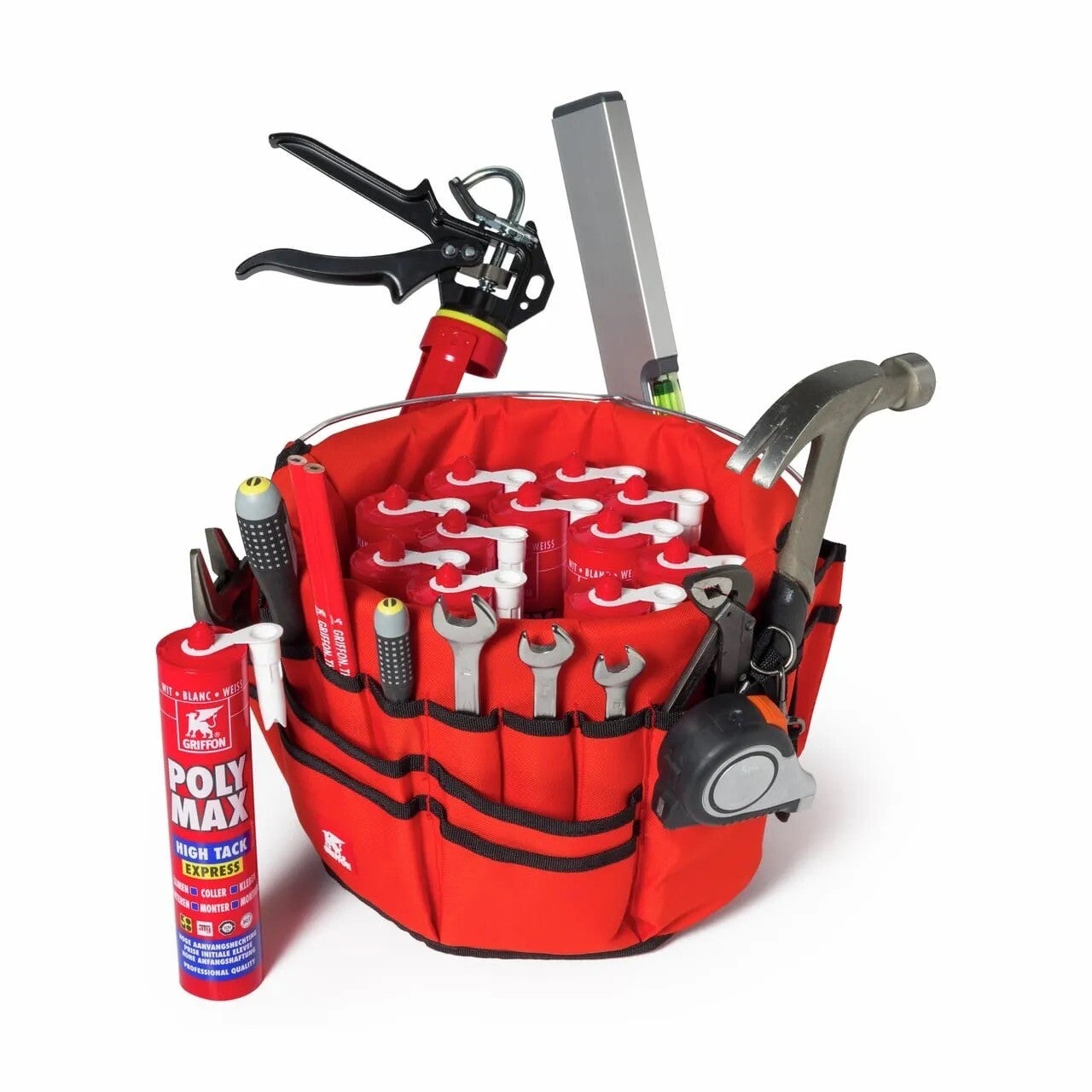 12 kokers Poly Max High Tack Express wit in een handige toolbucket inclusief organiser.